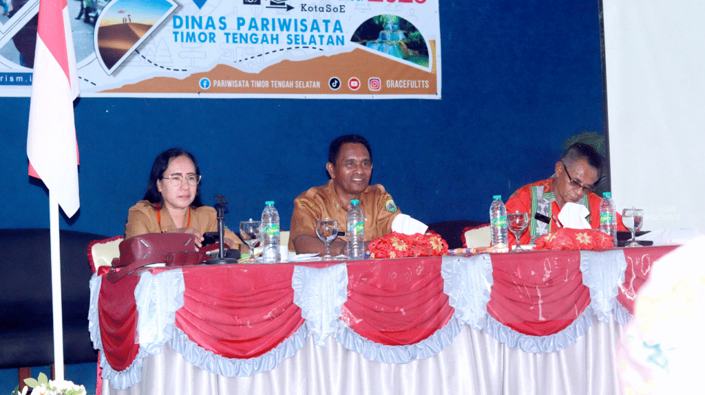 SoE, KLtvnews.com – Sebuah gelombang baru tengah bergerak di Kabupaten Timor Tengah Selatan (TTS). Gelombang yang bukan sekadar meniup angin perubahan, tetapi mengguncang fondasi pembangunan sektor pariwisata daerah. Itulah atmosfer yang tercipta ketika Pelatihan Pemandu Destinasi Wisata Tahun 2025 resmi dibuka di Hotel Timor Mega SoE, tanggal 25–26 November 2025.