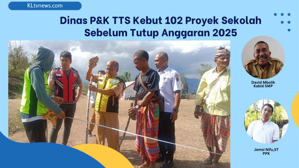 SoE, KLtvnews.com – Menjelang akhir tahun anggaran 2025, Dinas Pendidikan dan Kebudayaan Kabupaten Timor Tengah Selatan (TTS) kini berpacu dengan waktu. Deru kendaraan proyek terdengar di sejumlah pelosok kecamatan, pertanda semangat membangun sarana pendidikan tengah bergelora. Sebanyak 102 paket pembangunan fisik gedung sekolah sedang dikebut penyelesaiannya agar rampung sebelum “closing” anggaran tahun ini.