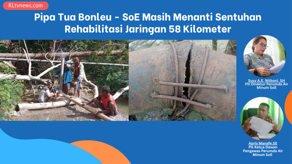 SoE – KLtvnews.com  Tiga dekade sudah, pipa tua Bonleu setia mengalirkan air kehidupan bagi ribuan warga Kota SoE. Namun kini, usianya yang menua membuat aliran itu tak lagi sekuat dulu. Di tengah retakan pipa dan stagnannya peningkatan sumber air Fatuoni, Perusahaan Umum Daerah (Perumda) Air Minum SoE terus berjuang membuka jalan menuju optimalisasi sistem penyediaan air minum (SPAM) Bonleu.