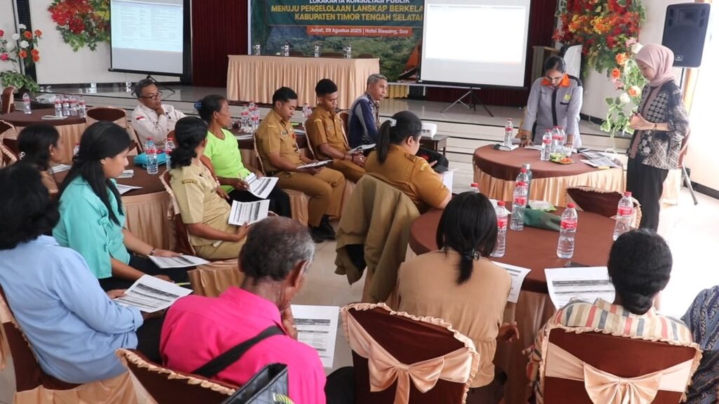 SoE, KLtvnews.com –Dalam menghadapi ancaman perubahan iklim yang semakin nyata, Kabupaten Timor Tengah Selatan melangkah lebih jauh. Jumat, 29 Agustus 2025, Pemerintah Kabupaten TTS bekerja sama dengan ICRAF Indonesia menggelar Lokakarya Konsultasi Publik bertajuk “Menuju Pengelolaan Lanskap Berkelanjutan Kabupaten Timor Tengah Selatan” di Hotel Blessing, SoE.
